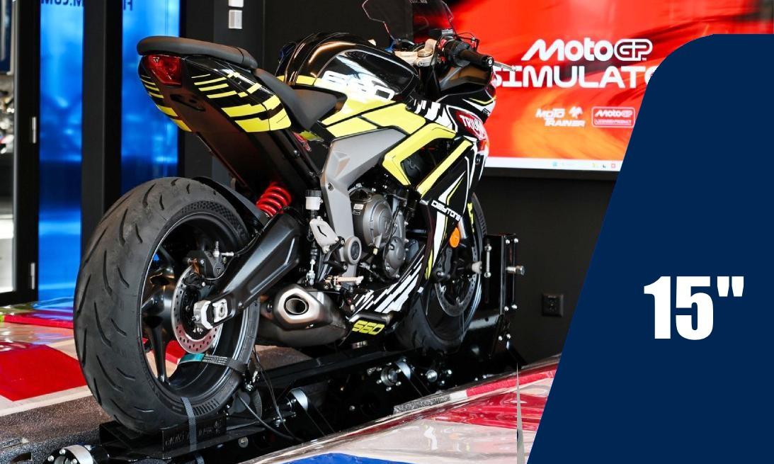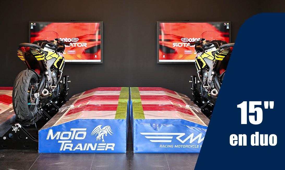 - Session 15 minutes : Idéale pour une première découverte, cette formule permet de prendre en main le simulateur et de ressentir les sensations du pilotage MotoGP.